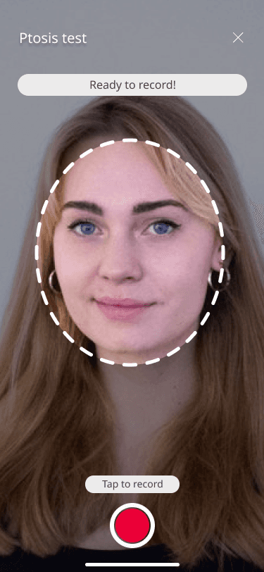 Facial analysis model that monitors eyelid droop longitudinally, supporting more consistent evaluation of disease progression.