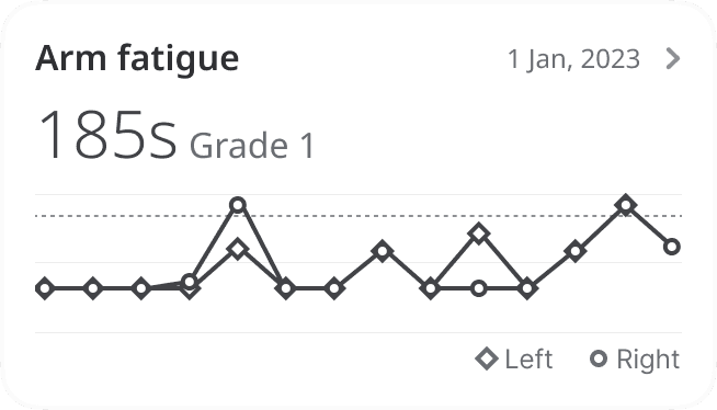 Camera-based analysis to quantify arm endurance and fatigue, enabling repeatable assessment in fluctuating neuromuscular conditions.