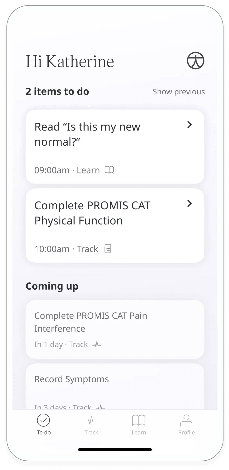 Patients are given a timeline outlining the tasks they need to complete and receive timely reminders.