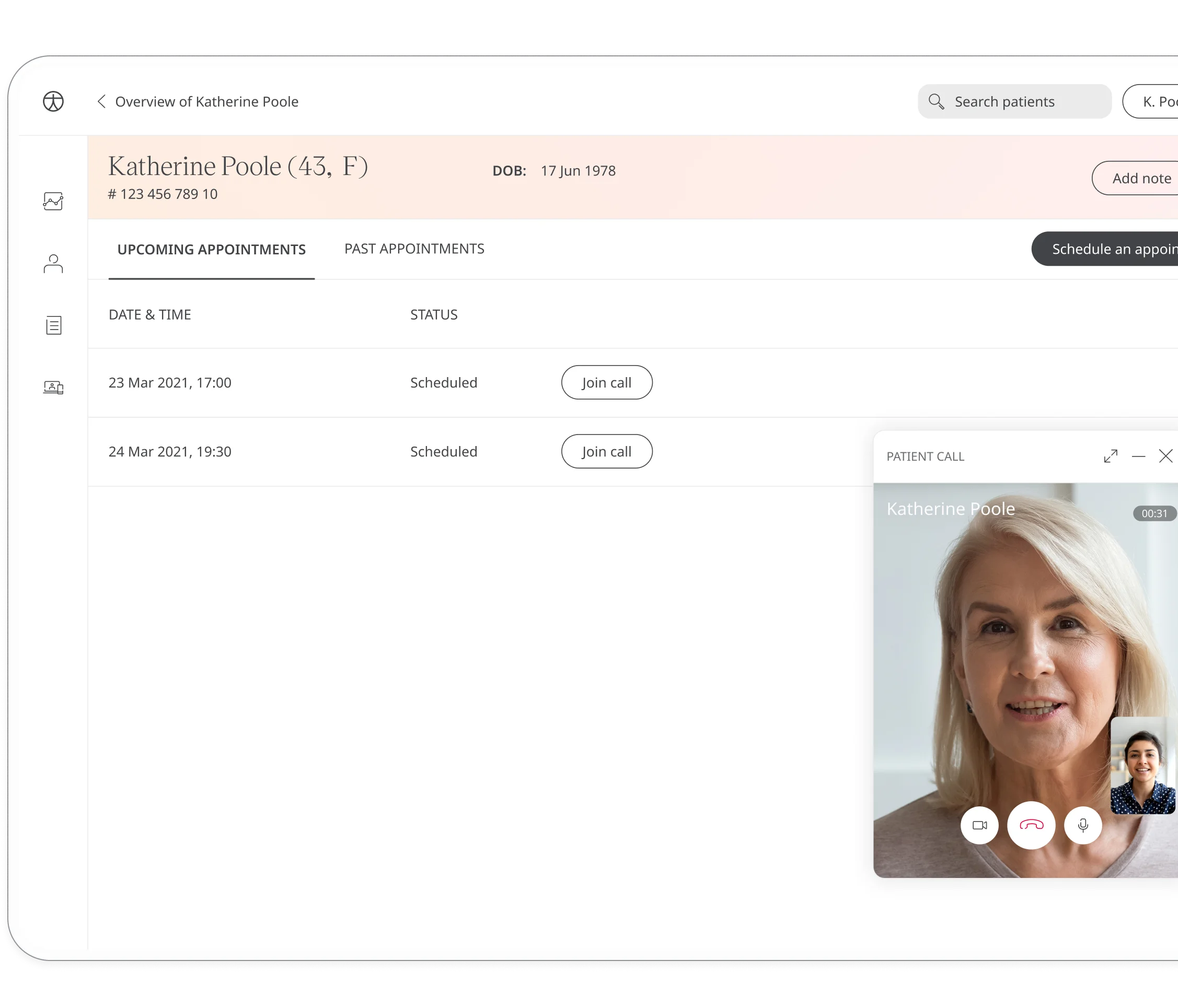 Clinicians can quickly and securely speak to patients through video and audio calls and schedule in-person consultations to ensure they are on track with their care plan and to check any irregularities flagged in their health records.